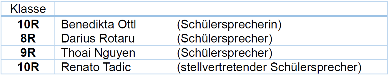 Die gewählten Vertreter der jeweiligen Klassen (Schuljahr 2025/26)